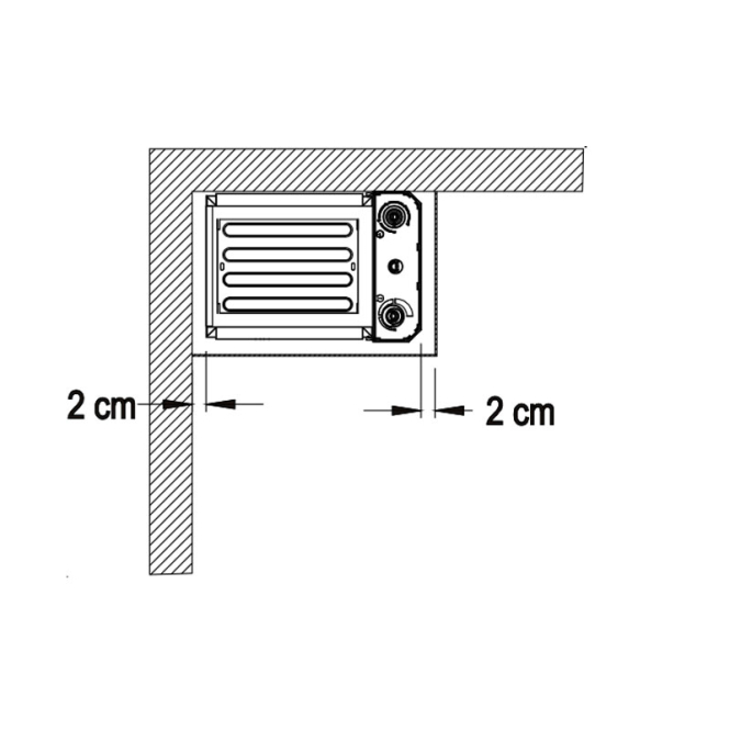Wandausführung zur Wandmontage. Thermostatische Temperaturregelung und Heizzeitbegrenzung bis 4 Std.