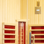 Diese Fusion-Infrarotkabine aus nordischer Fichte mit Platz für zwei Personen vereinigt zwei bewährte Infrarot-Systeme in einem.