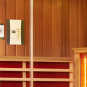 Infrarotkabine aus unbehandelter kanadischer Zeder. Das antibakterielle Holz sorgt für einen angenehmen Duft und ist der perfekte Werkstoff für eine Infrarotkabine.