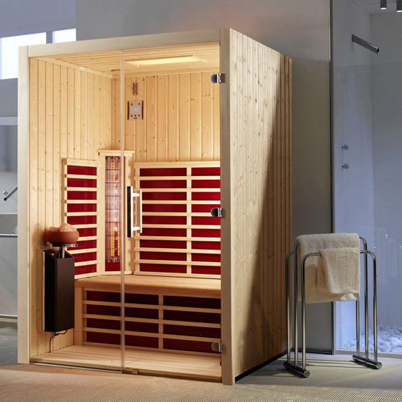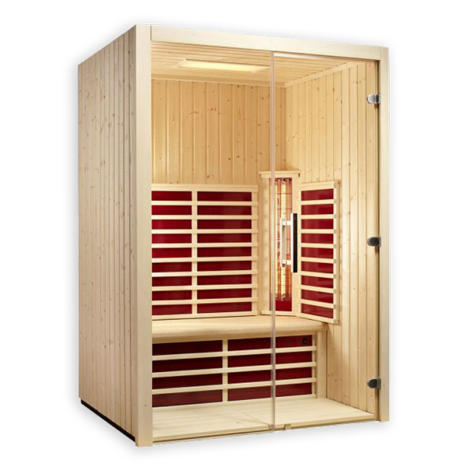 Diese TrioSol-Infrarotkabine aus nordischer Fichte für zwei Personen vereinigt alles was gut tut. Genießen Sie das innovative Zusammenspiel aus Infrarotstrahlung und Salzdampf. 2 VITALlight-ABC-Strahler kombiniert mit Flächenheizelementen und der Salzverdampfer Sole-Therme Pur für das perfekte Meeresklima. Besser kann Gesundheitsvorsorge nicht sein!