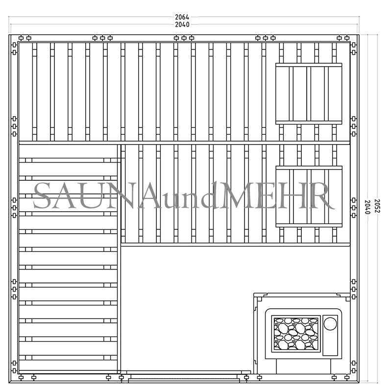 wellFUN Massivholz Saunakabine GERADE 204 x 204
