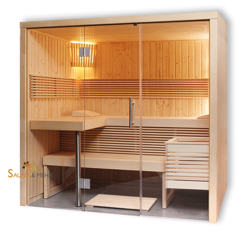 Standardisierte Massivholzsaunen im Systembau, können mit vielsteitigen Technikpaketen für Finnische Sauna oder BIO Combi-Betrieb ausgestattet werden und mit möglichen Zubehör-Optionen erweitert werden.