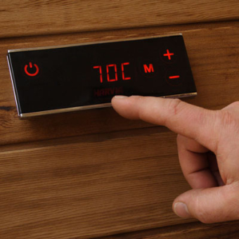 Das elegant kleine und dennoch übersichtliche Touch-Bedienfeld lässt sich mühelos am Ort Ihrer Wahl installieren. Dank des Bedienfelds können Sie mit nur einem Blick kontrollieren, ob Ihre Sauna auf die richtige Temperatur für Sie eingestellt ist. Wählen Sie die technologische Qualität eines Pioniers – made by Harvia